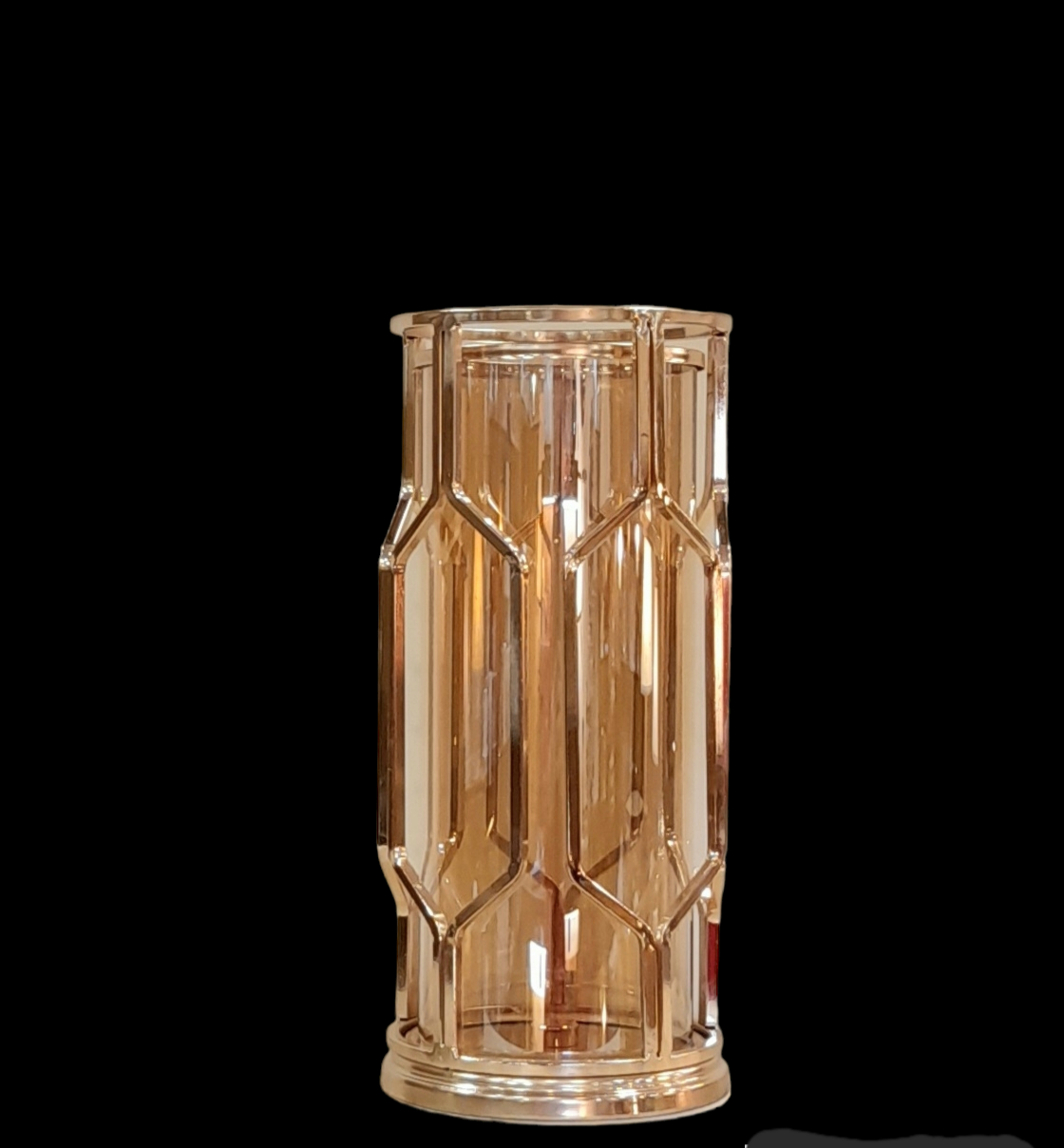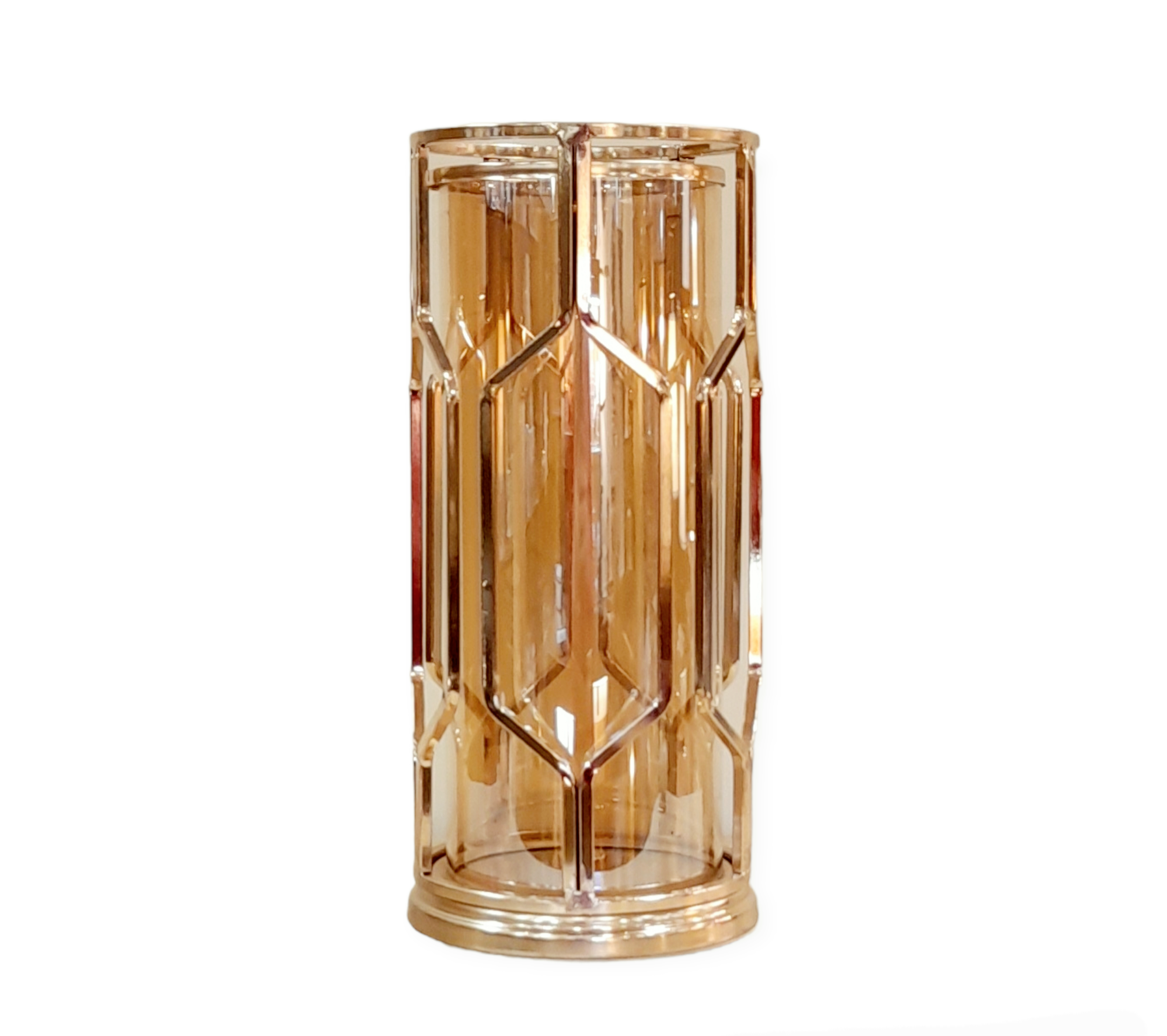 | Material | Transparent glass in honey color- Gold plated metal |
