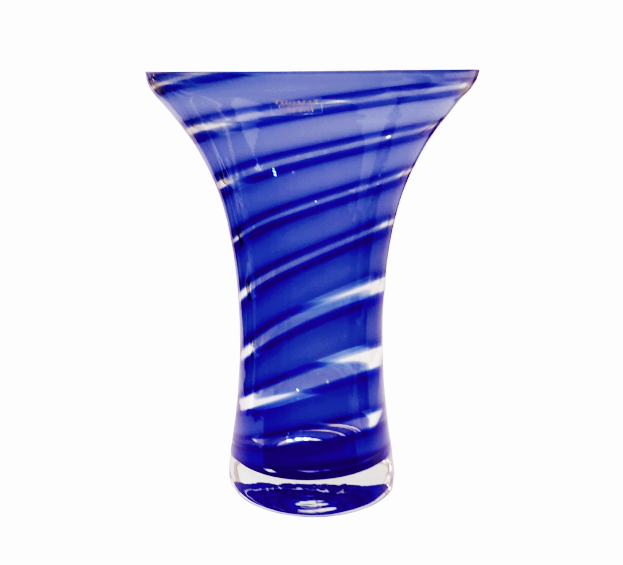 Handmade crystal vase, with transparency rotating strips in prussian blue and purple-lilac shades