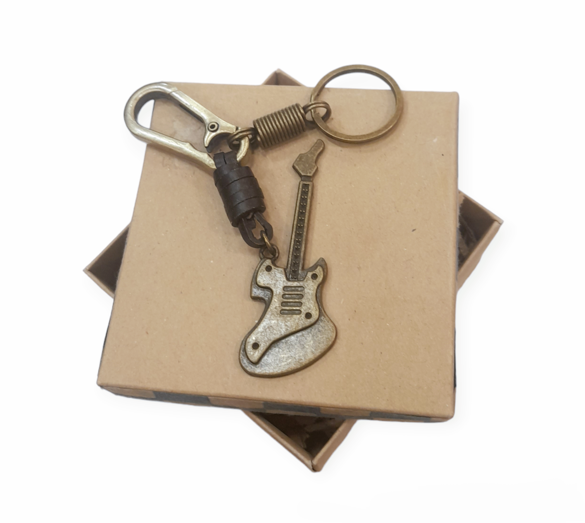 Brass Electric guitar keychain, in a gift box