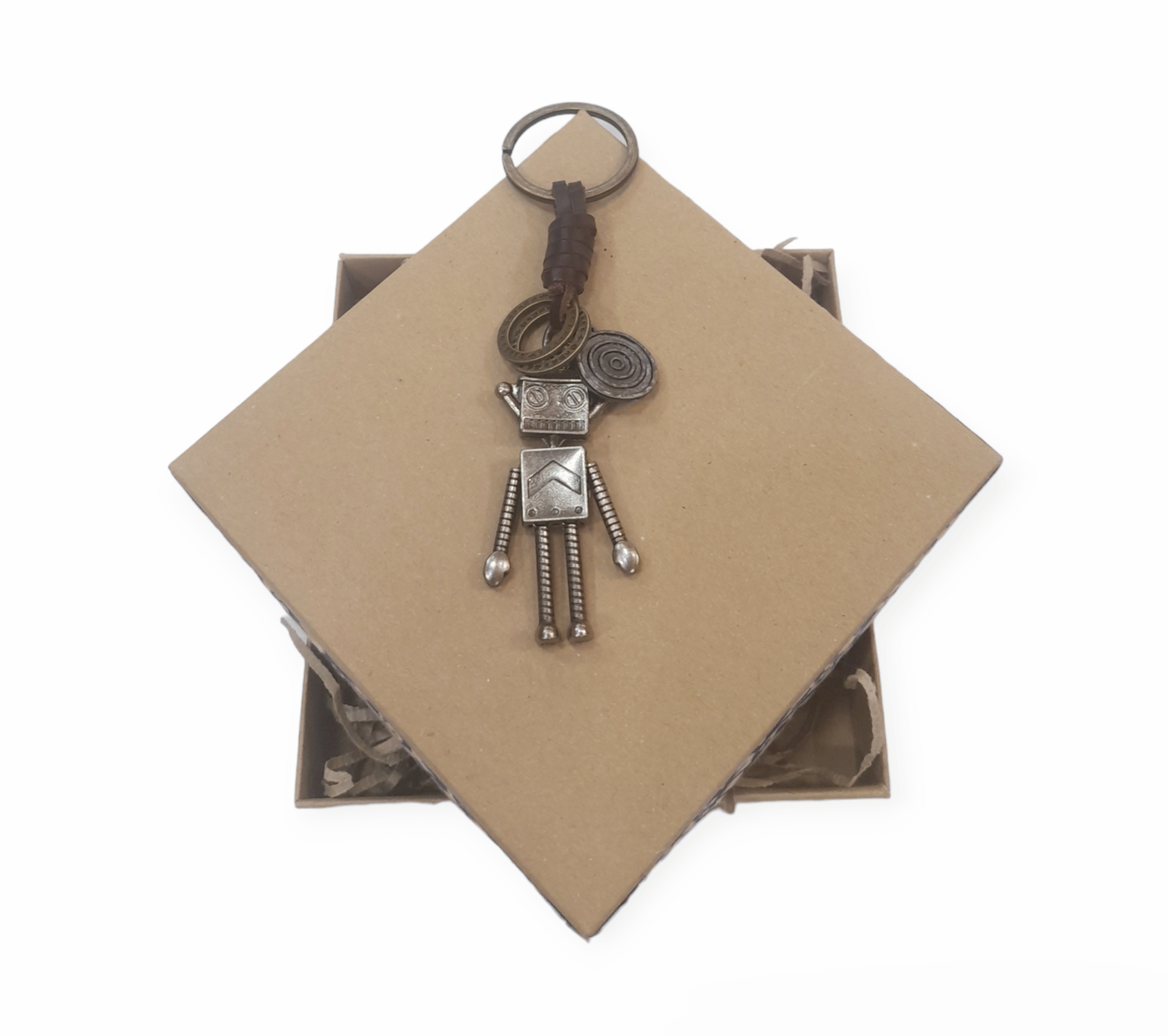 Brass Robot keychain, in a gift box