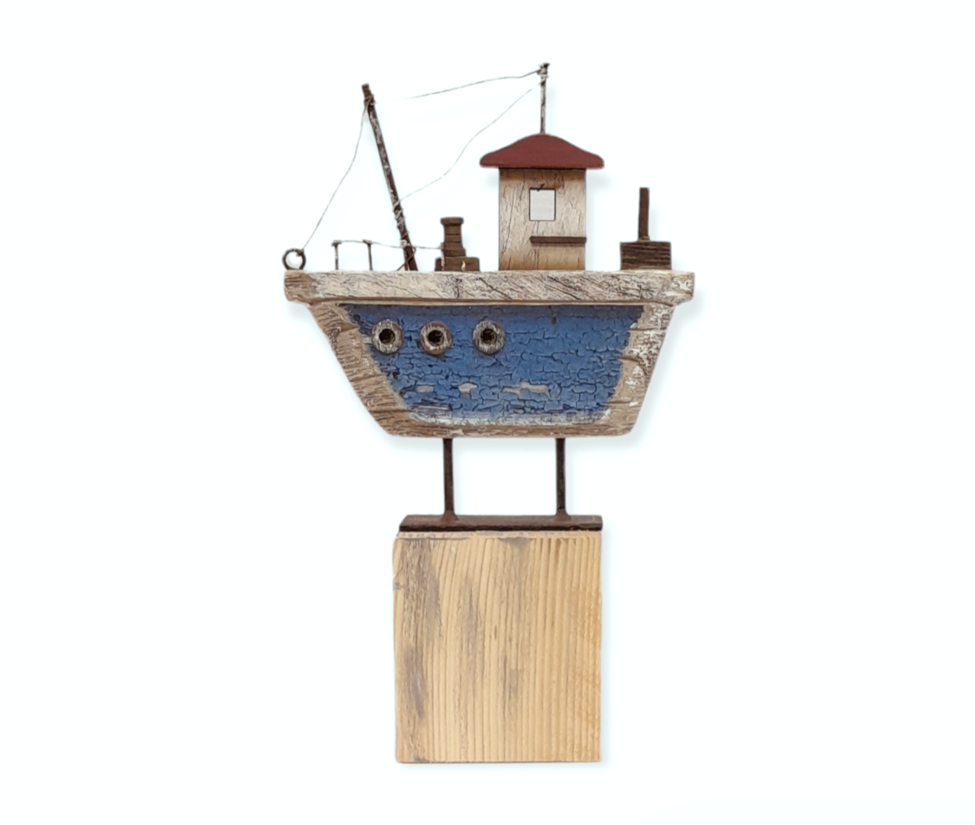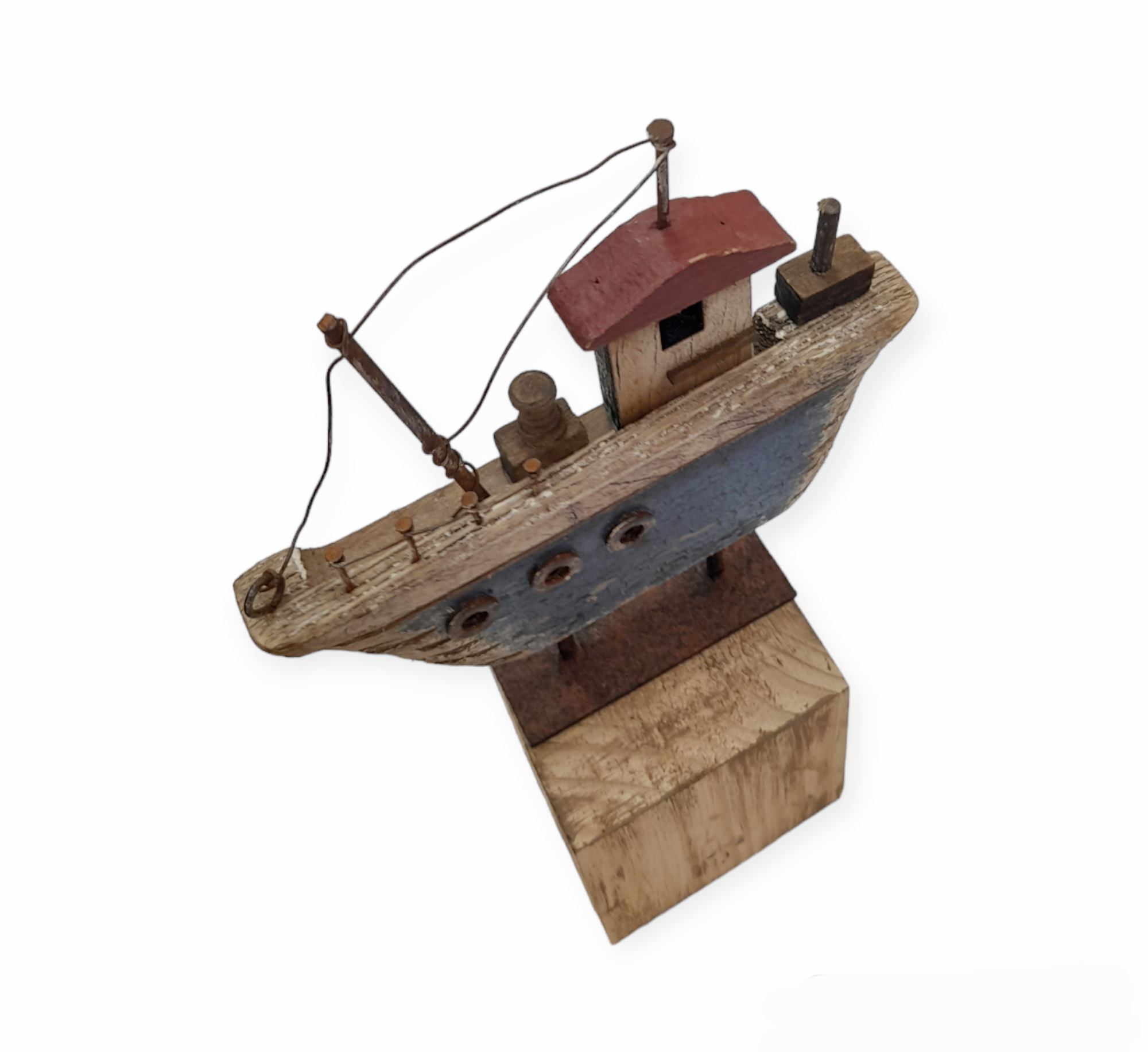 Χειροποίητο ξύλινο καράβι, τοποθετημένο σε ξύλινη βάση