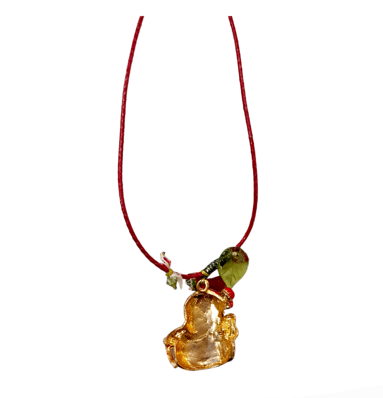 Δεμένο σε δερμάτινο κόκκινο κορδόνι, με διακοσμητικά στοιχεία